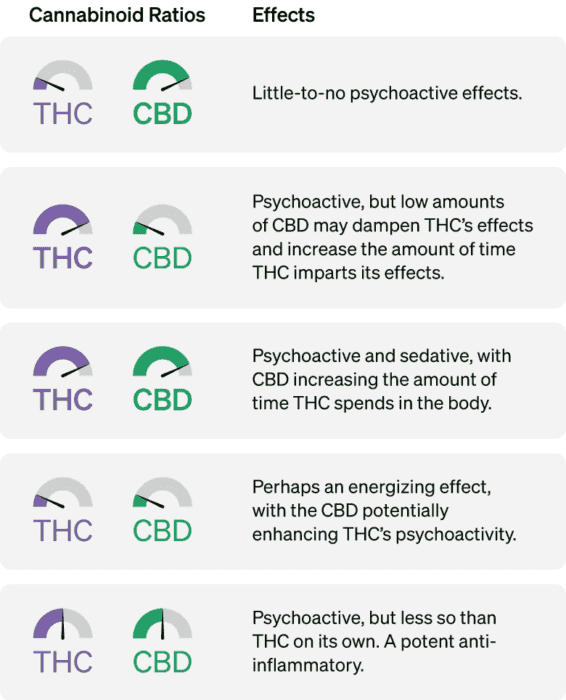 A combinação de THC e CBN pode aumentar as propriedades sedativas da planta, enquanto a combinação de CBD com THCV pode levar a um efeito psicoativo mais lúcido e ajudar a tratar a obesidade e o diabetes.